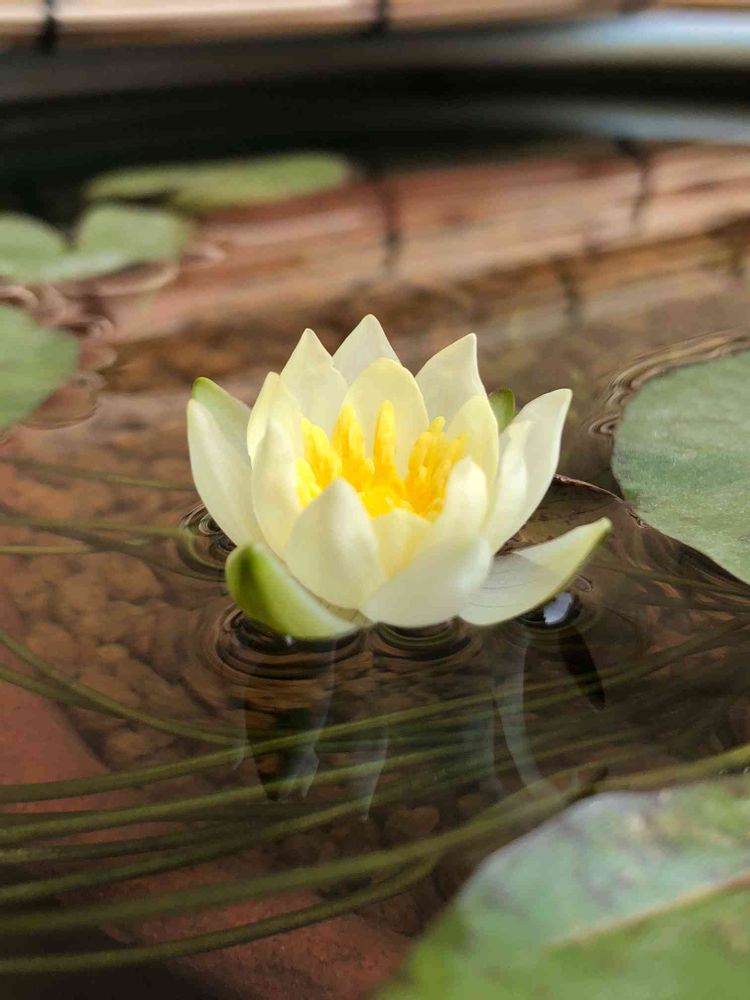 睡蓮鉢の中にヤゴがいたので姫睡蓮を小さな鉢に植え替えた(侵入物体がいても中の様子が見えるように)ので心配してたけど姫睡蓮、メダカは元気です。