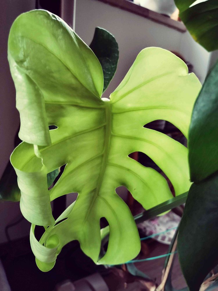 生まれいづるモンステラですが人間と同じ様に悩みがあるのかな? 誕生まで時間がかかる。