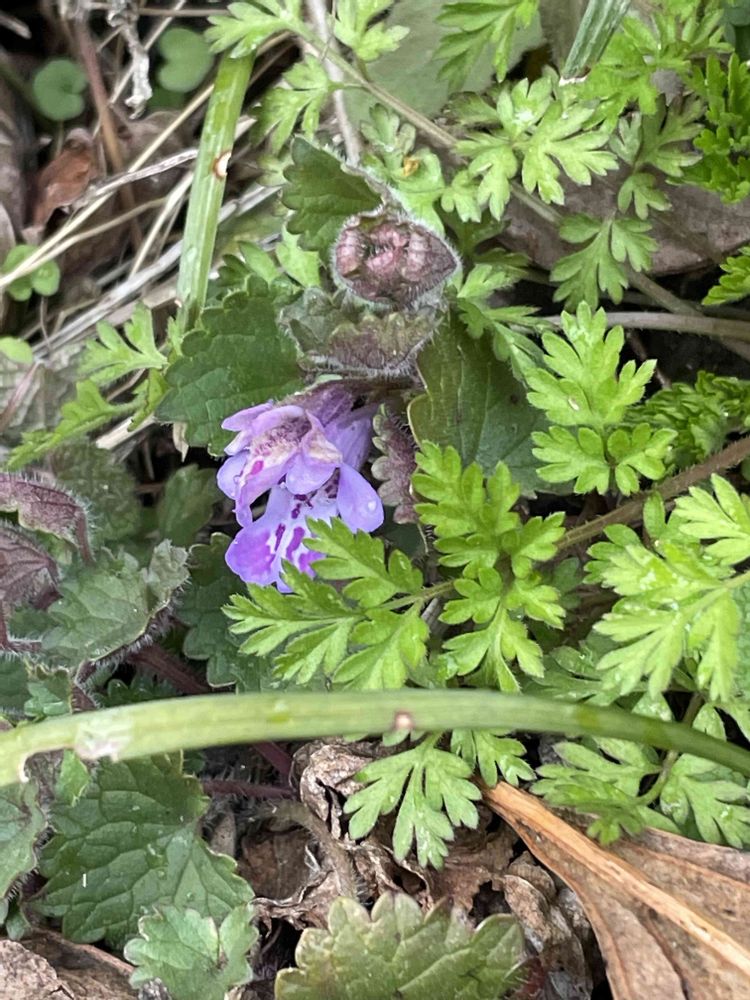 カキドオシは咲き始めでまだツルになっていないので短いです💜だんだんと伸びてきます