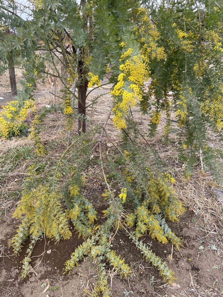 裏の方のミモザ折れてるのに枯れずに花が咲き始めました🌼🌼🌼☺️