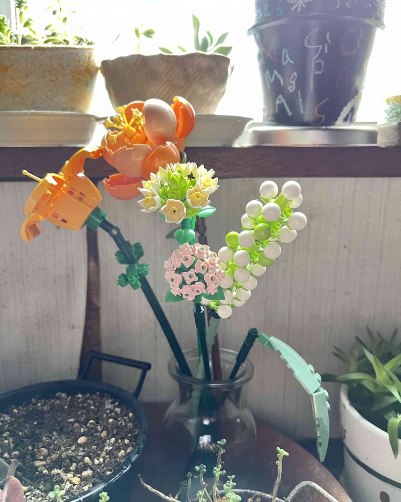 おー!そのレゴの花めっちゃ可愛い〜小花のやつや白いつぶつぶのとか😆🤚✨