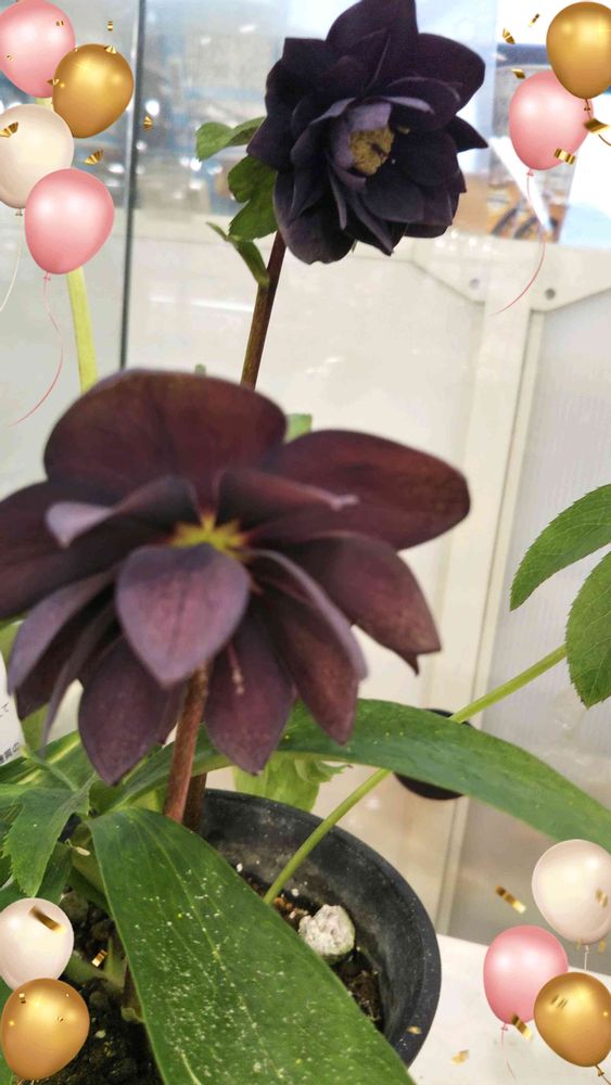 クリスマスローズ、ブラックダブルさん🖤💜💛💜🖤お洒落ねー~~