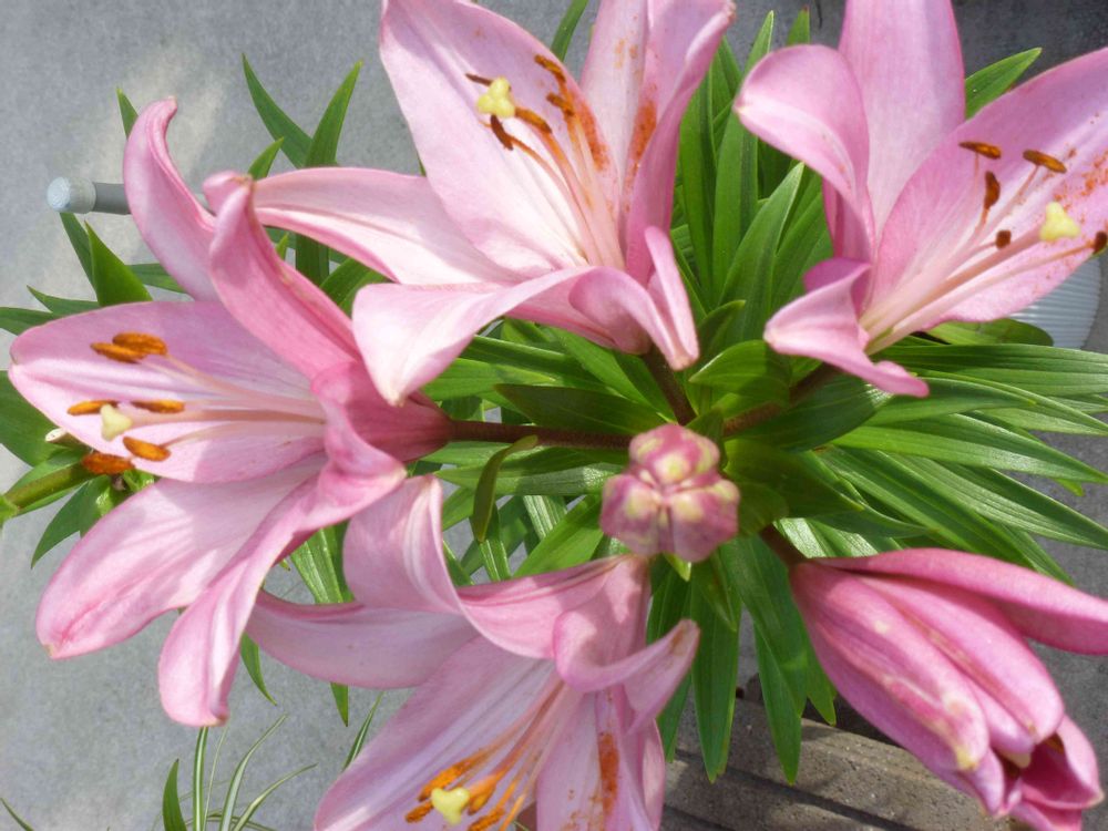 薄ピンクのユリが咲き進み、「ユリ輪っか」のようです☆