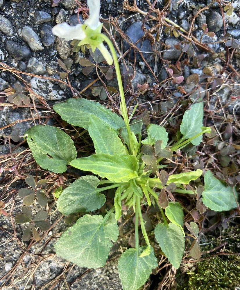 近所の歩道の裂け目から毎年シロバナノジスミレが咲きます