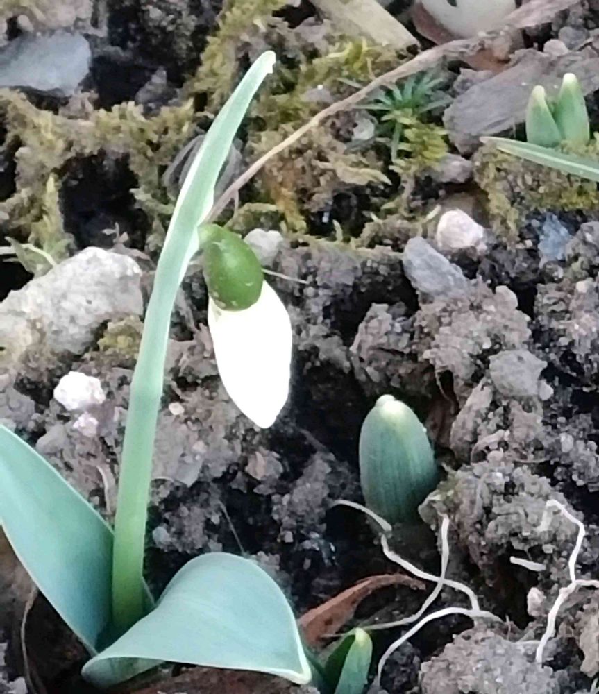 雪の中からのスノードロップ 健気で愛しいですね〜😍