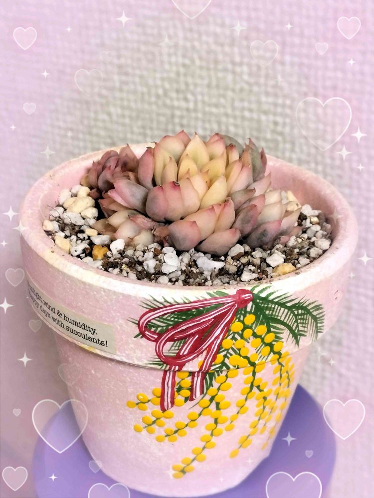 chiruyaさんのミモザ鉢に植えた可愛い子眺めて癒やされます💖