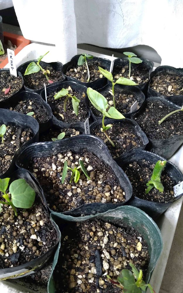 寒くなるというので❄️ローゼルの苗やまだまだ小さい野菜の苗たちはリビングに避難🌱
