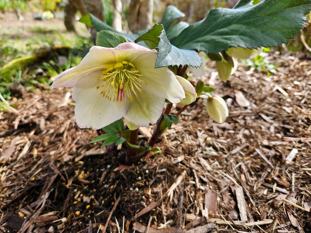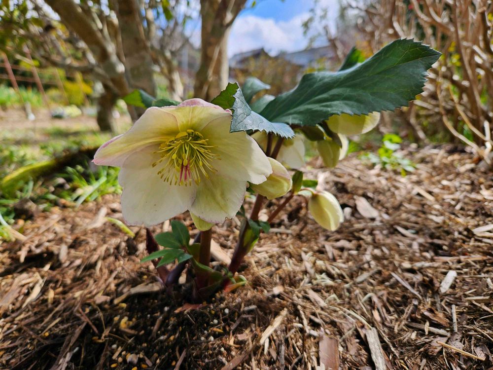 義実家の庭の片隅に移植したクリスマスローズが咲いてくれました😁夏の日差しを多少避けれらる場所に植えたので、無事に夏越ししてくれることを期待してます😃