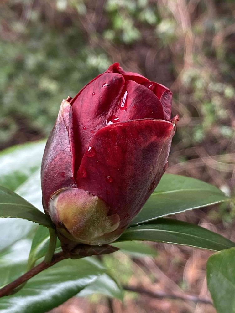①何年か前に地植えした小さな黒椿が大きく成長し、初めて蕾つきました❤️🙌
