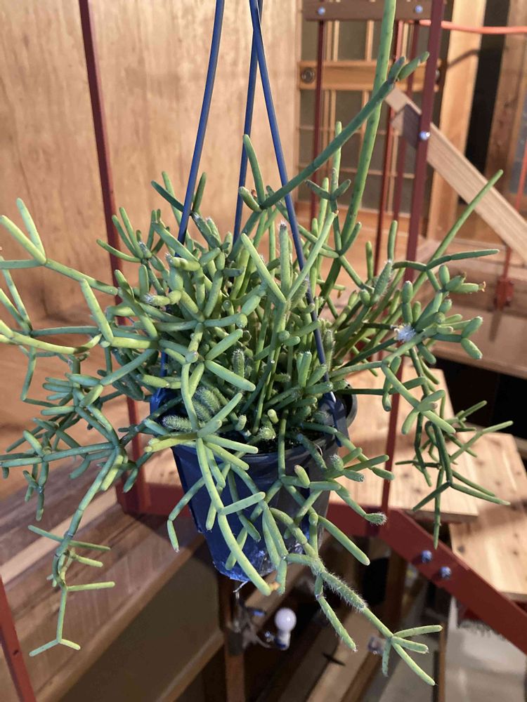 リプサリス、よく見ると白い小さなお花が咲きました。控えめでかわいい。