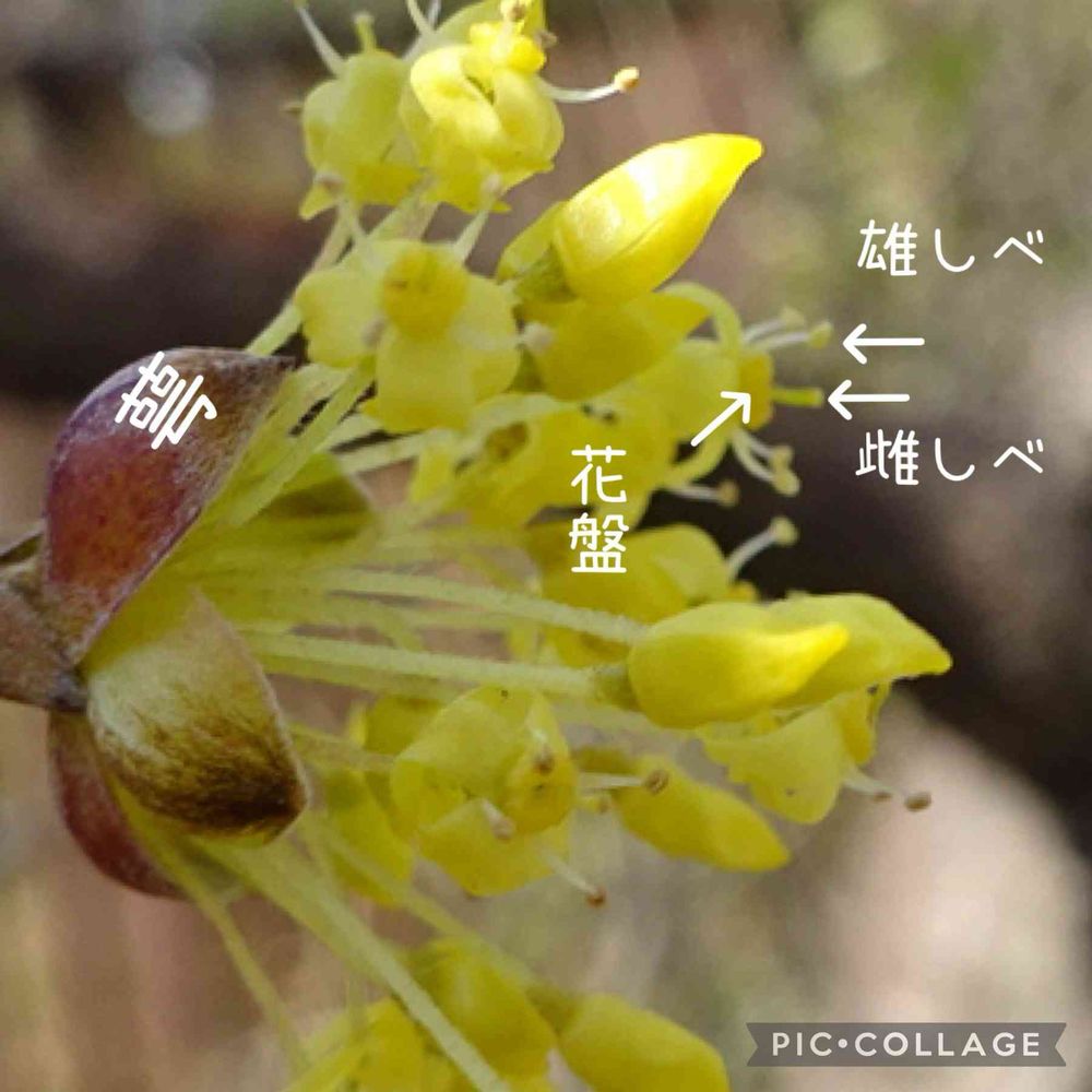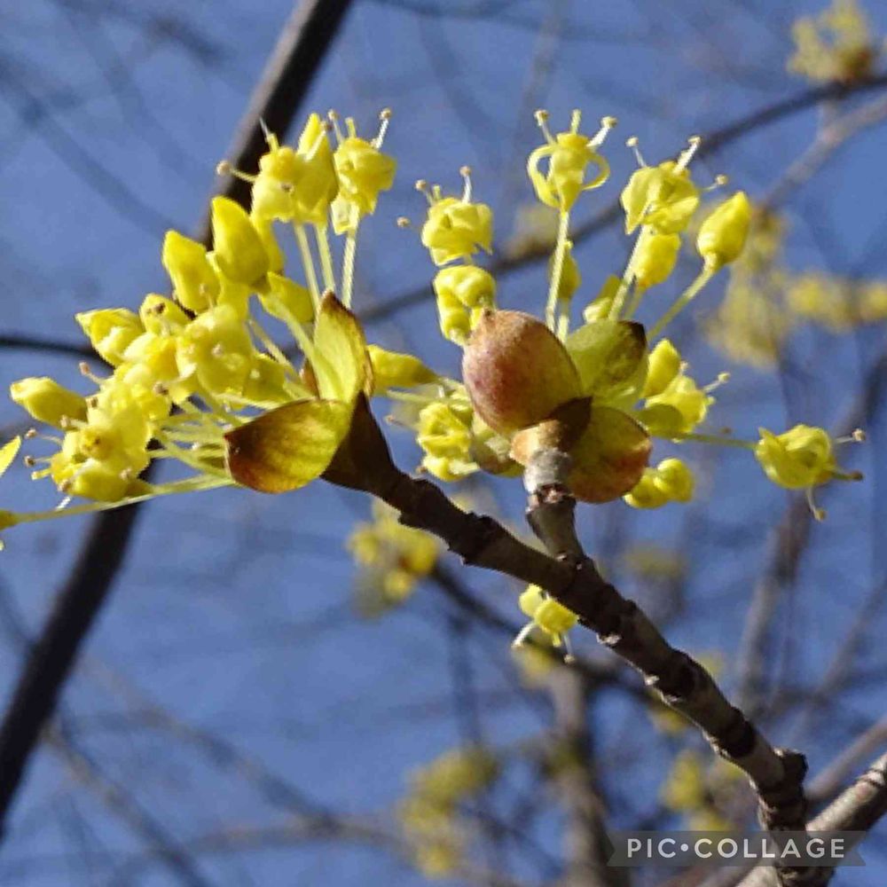 サンシュユのツンツンしベまで見れて嬉しいわ😄