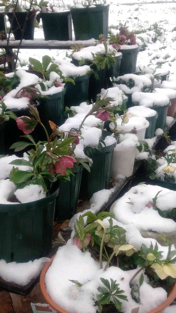 くまちゃんさんの、クリスマスローズ 重そうなお布団被ってますね😅