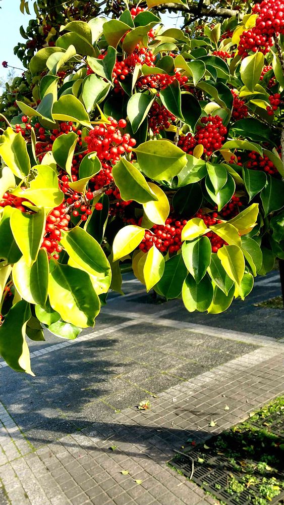 赤い実が花のように目を引きます✨くろがねもちかも知れないけど私には、違いがよく分かりません😅