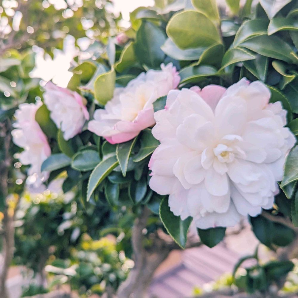 そしてお庭のサザンカ?の白が綺麗に咲いてくる