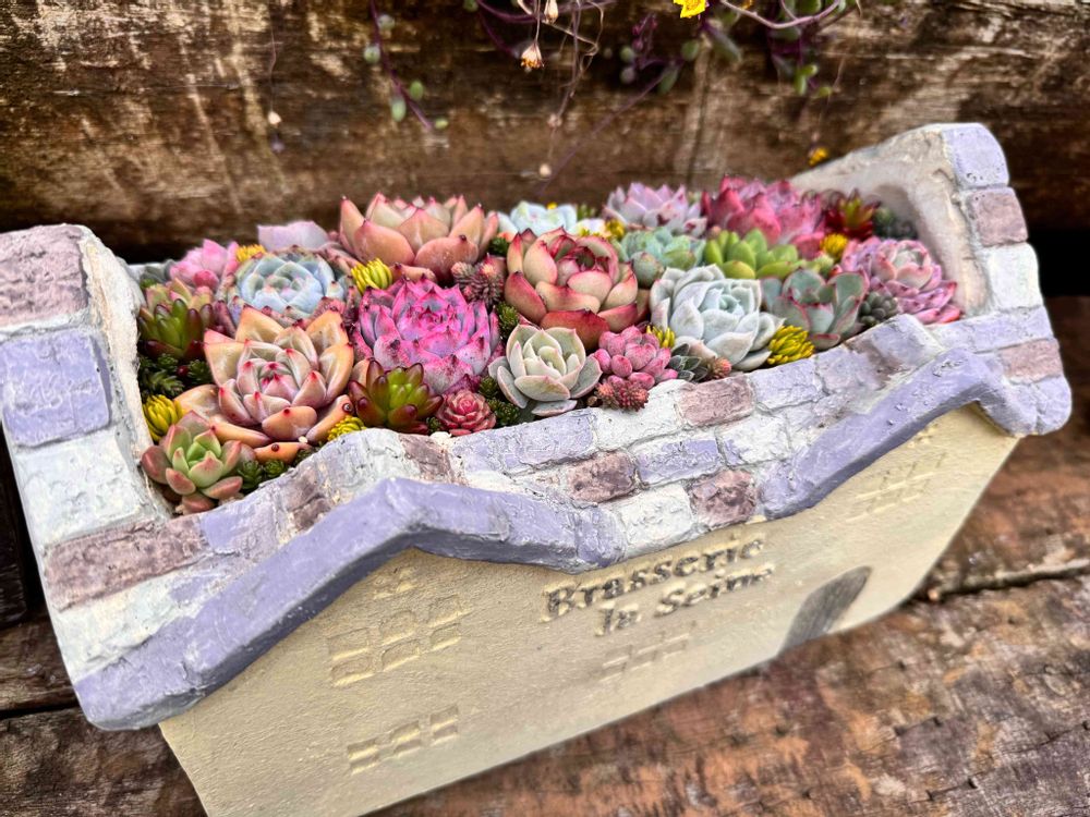 可愛い植木鉢に色とりどりの多肉ちゃん🥰