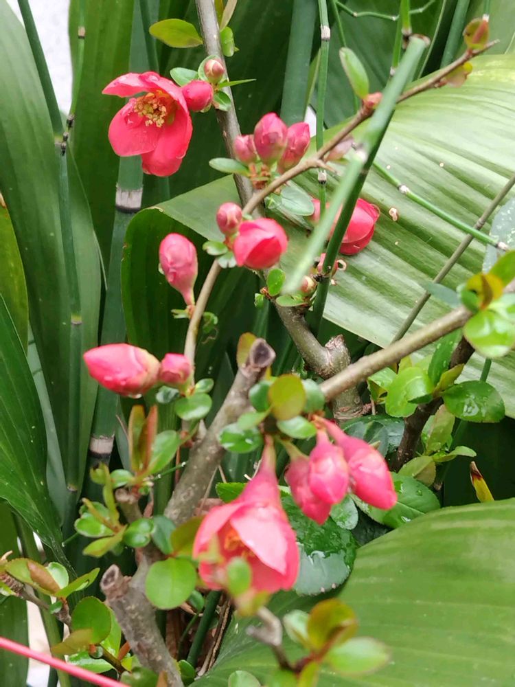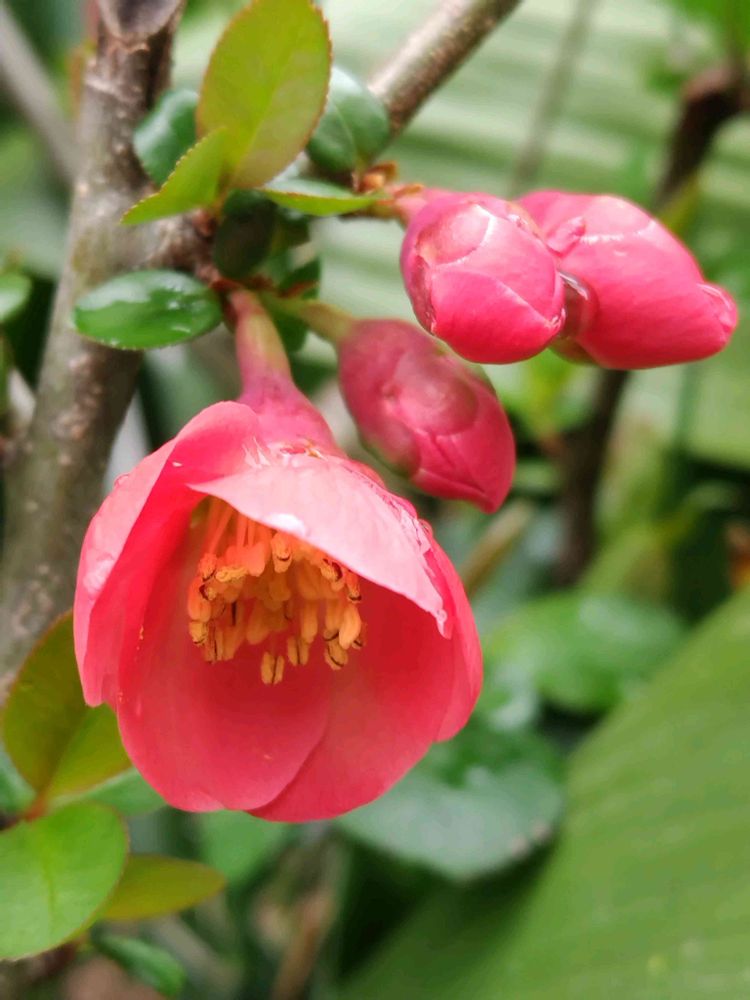 実家でボケ(木瓜)のお花が綺麗に咲いていました❤️💗