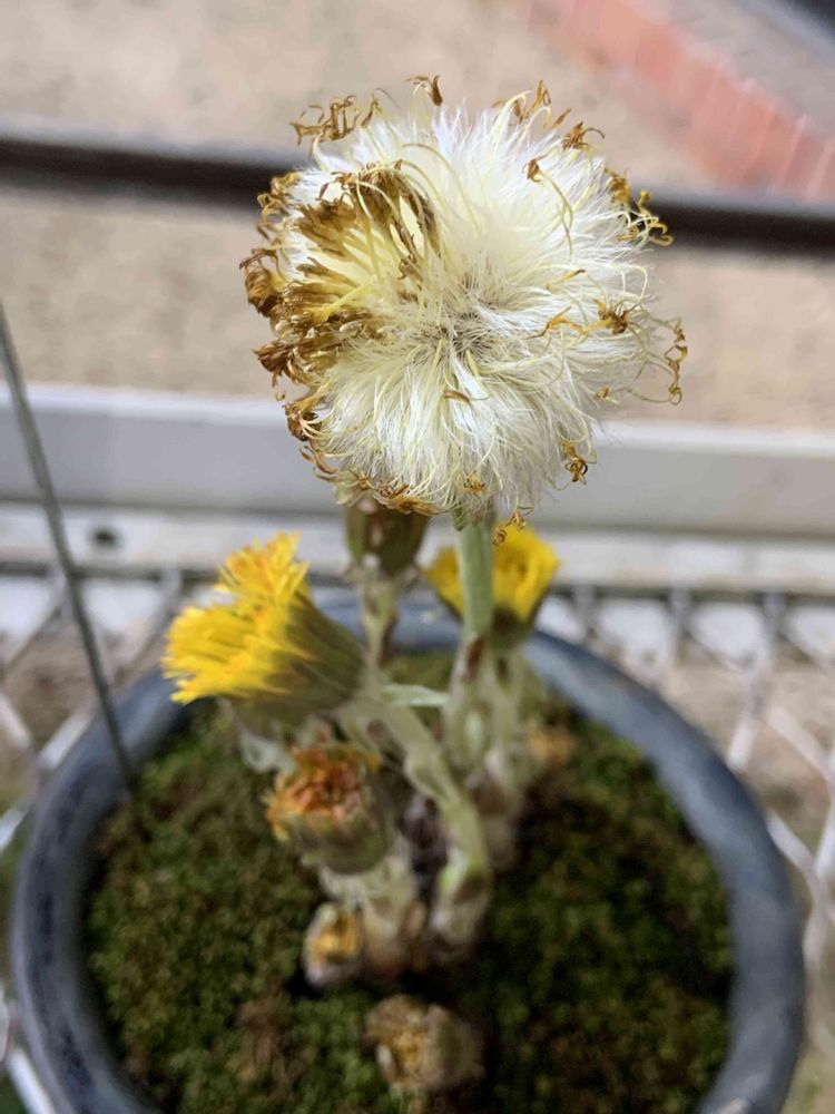 咲いてる花はフクジュソウにも似ていますが、キク科ゆえ綿毛を見るとタンポポだと納得します。
