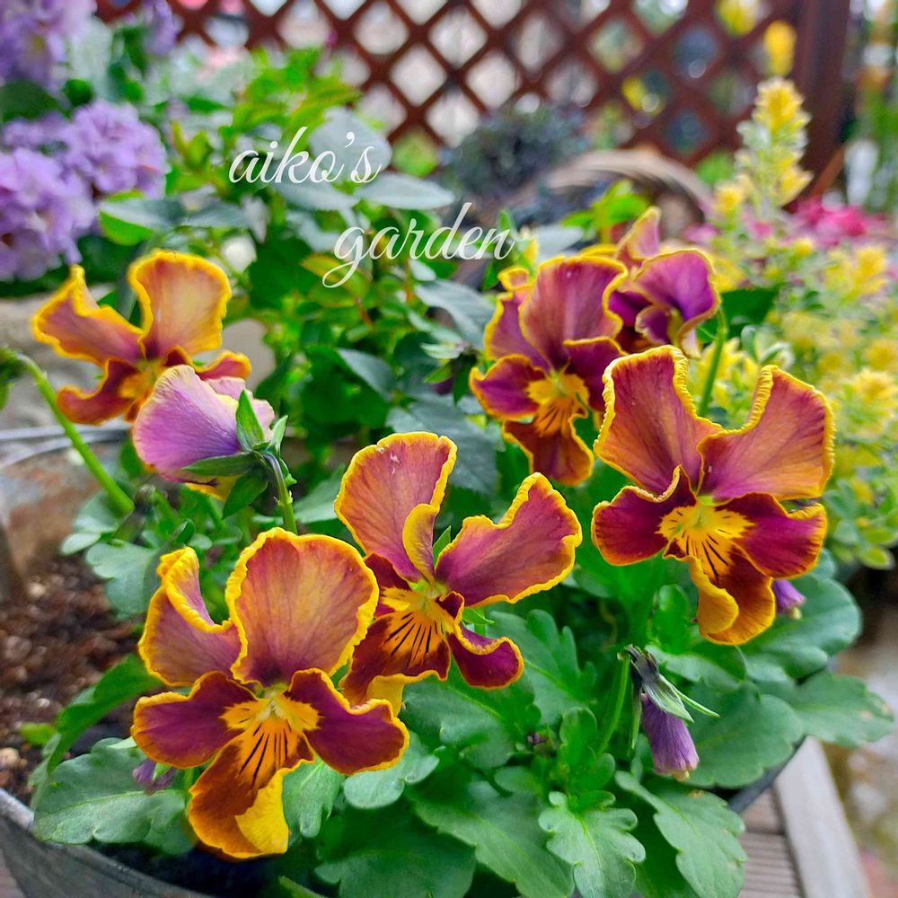 少し変わった形のビオラです。縁取りが入った渋いオレンジ系ビオラ💛🧡
