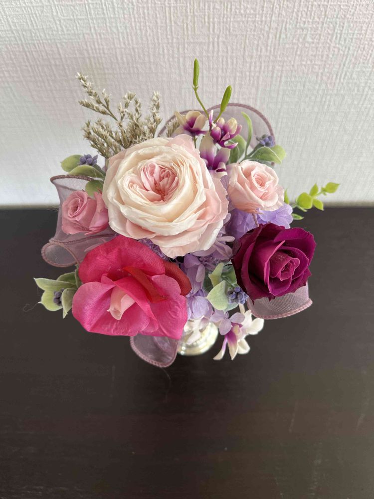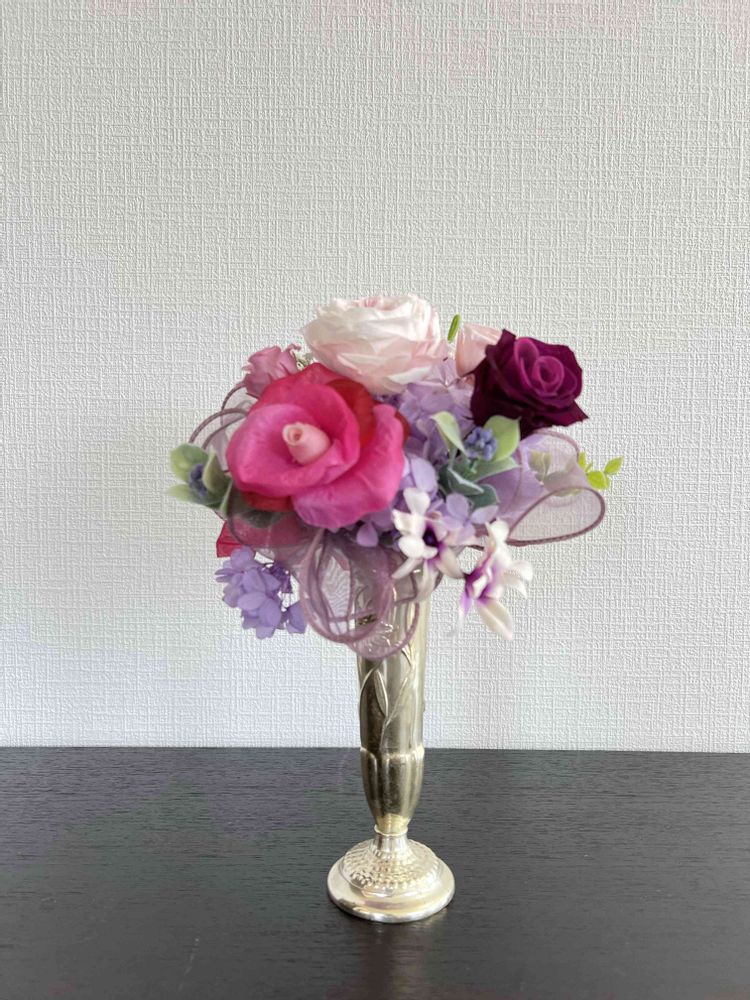 リボンが難しく綺麗なウェーブ出すのが大変でしたが素敵なブーケが出来ました