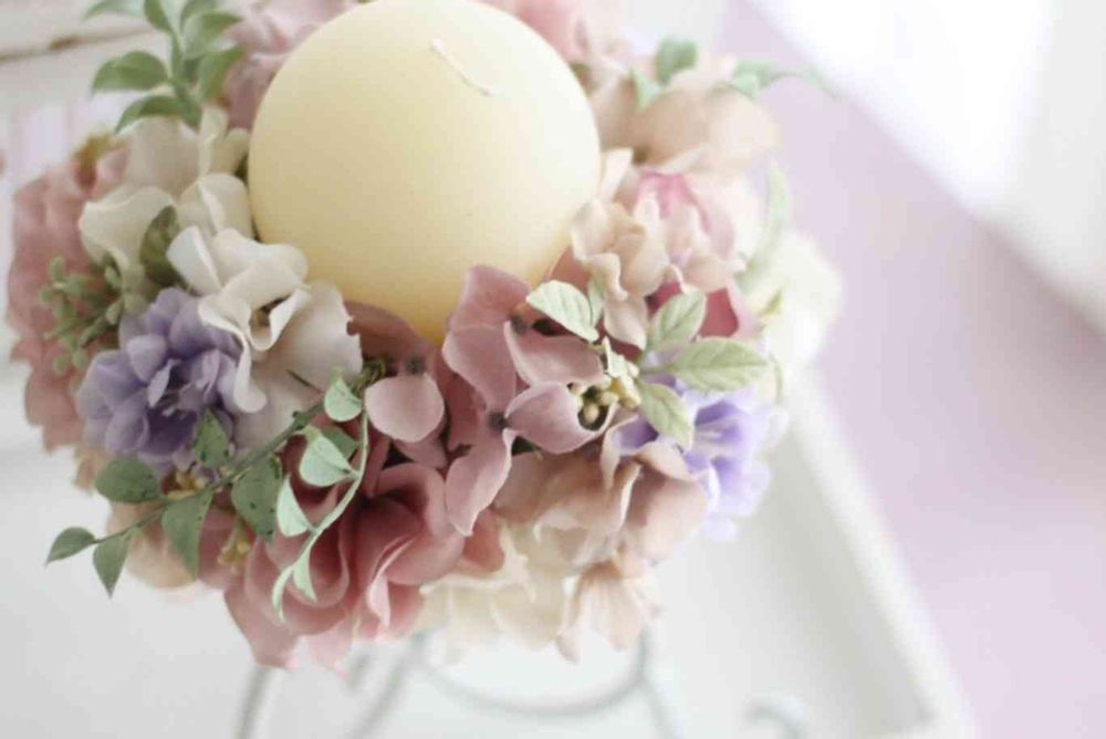 キャンドルをのせて周りをふんわりとお花で囲みました💗