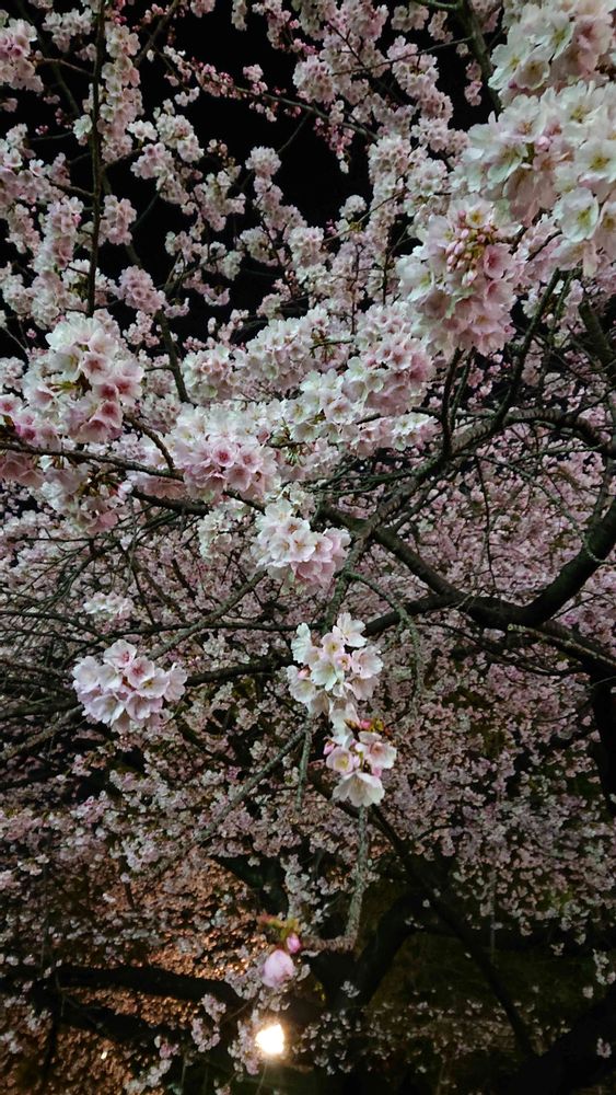 大寒桜、夜桜🌸🌛 上野の夜は、ずっと明るいので