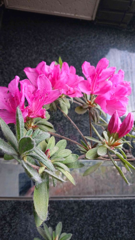 ツツジ、コインランドリーの熱風に応援📣されて早咲きですね〜💕