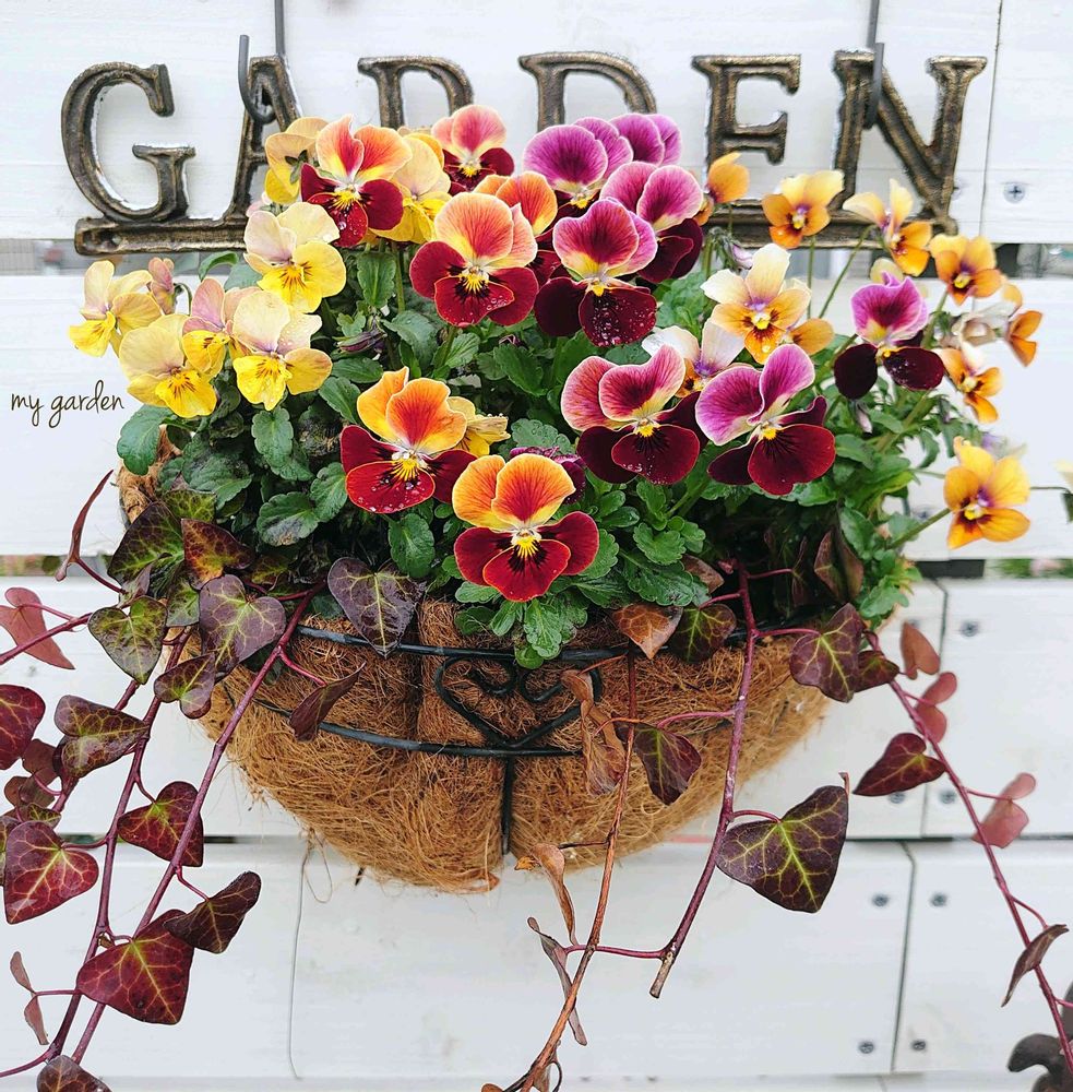病気かな?って思ったビオラ達だけど捨てれずに他のビオラ達とは近づけないようにハンギングにしています✨