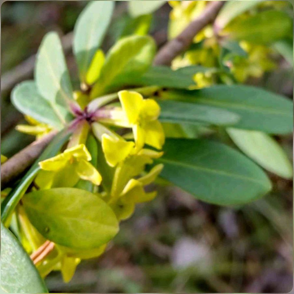 AIによると、ナニワズだったりもするけれど😅。姿形がよく似ていて花の色がオニシバリより黄色いナニワズ。