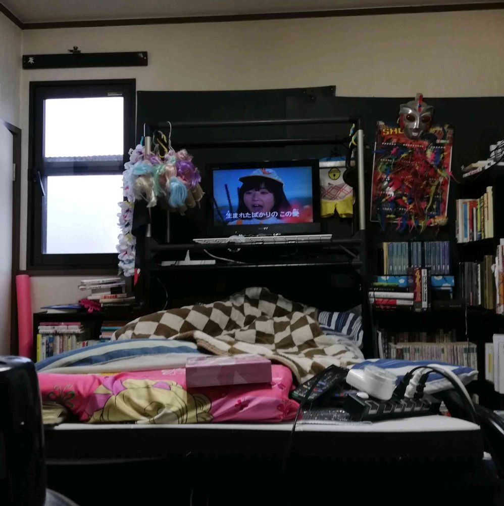 👸んで模様替えが完了。寝ながらDVDが見れるようになった👍 ラブシスシャンデリアがジャマで、映画に集中できそうにないので、あれは撤去。