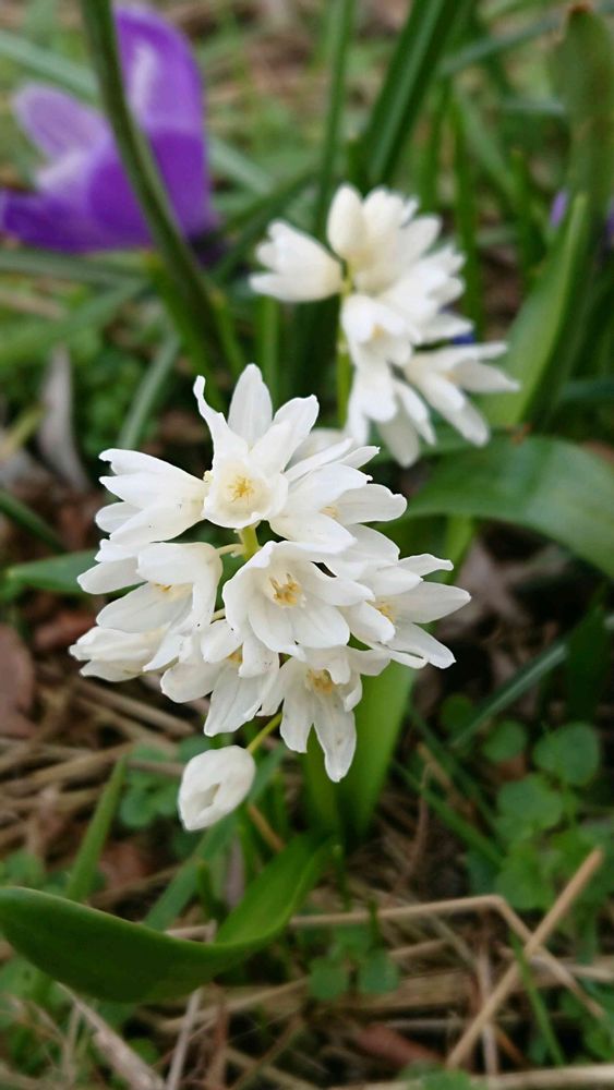今日見かけたシラー属のお花達🌸運河沿いの芝生の中に球根が植え込まれていて毎春ちゃんとお顔を出してます✨白、ピンク、水色、薄紫1区画歩く中で4色見つけました。