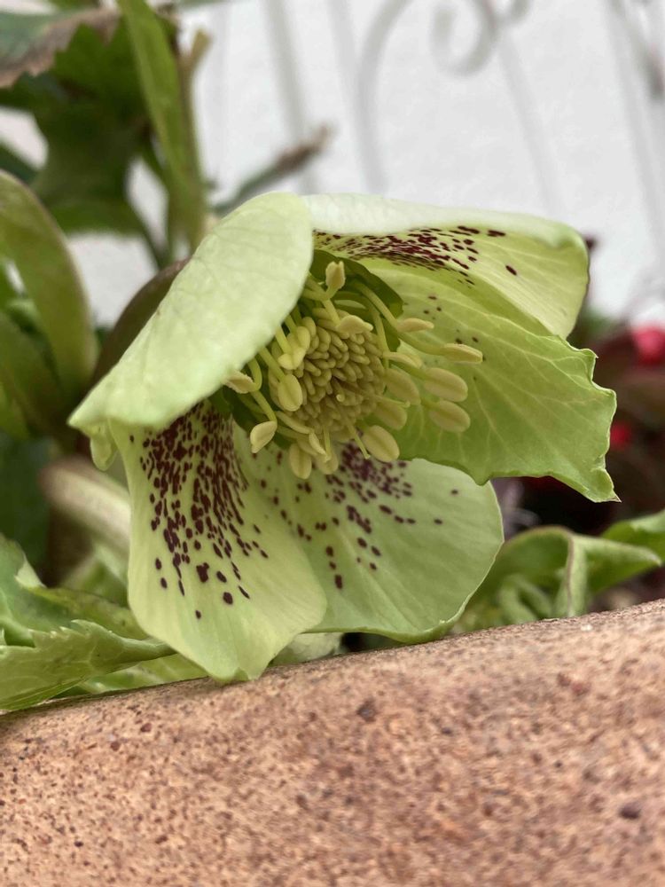 寄せ植えのクリスマスローズの雪と寒さで傷んだ葉を整理すると、株元に小さな蕾があって……🌼