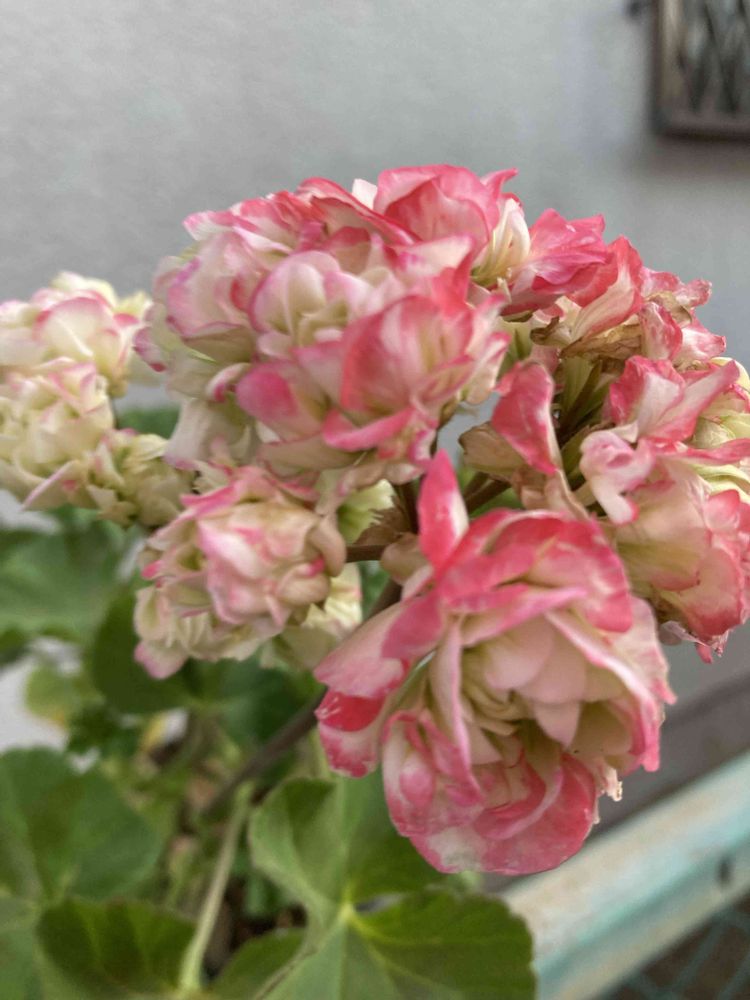 ゼラニウムと聞くと、初夏の華やぎのイメージだけど、爽やかな彩りの、薔薇🌹の華やぎを思わせる装いだなぁ~✌️(⌒‐⌒)