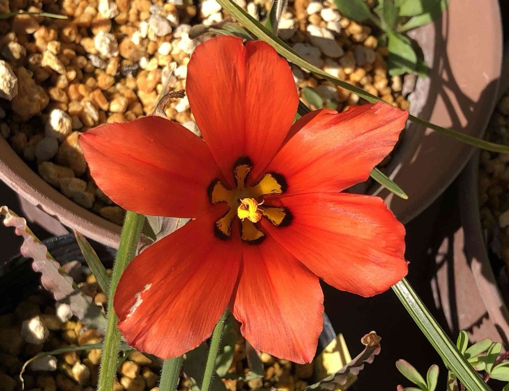 原種チューリップっぽいロムレア・ユニフォリアです🧡。種取りして増やしたいのですが1株だけだと結実しないみたいで策なしです😭。