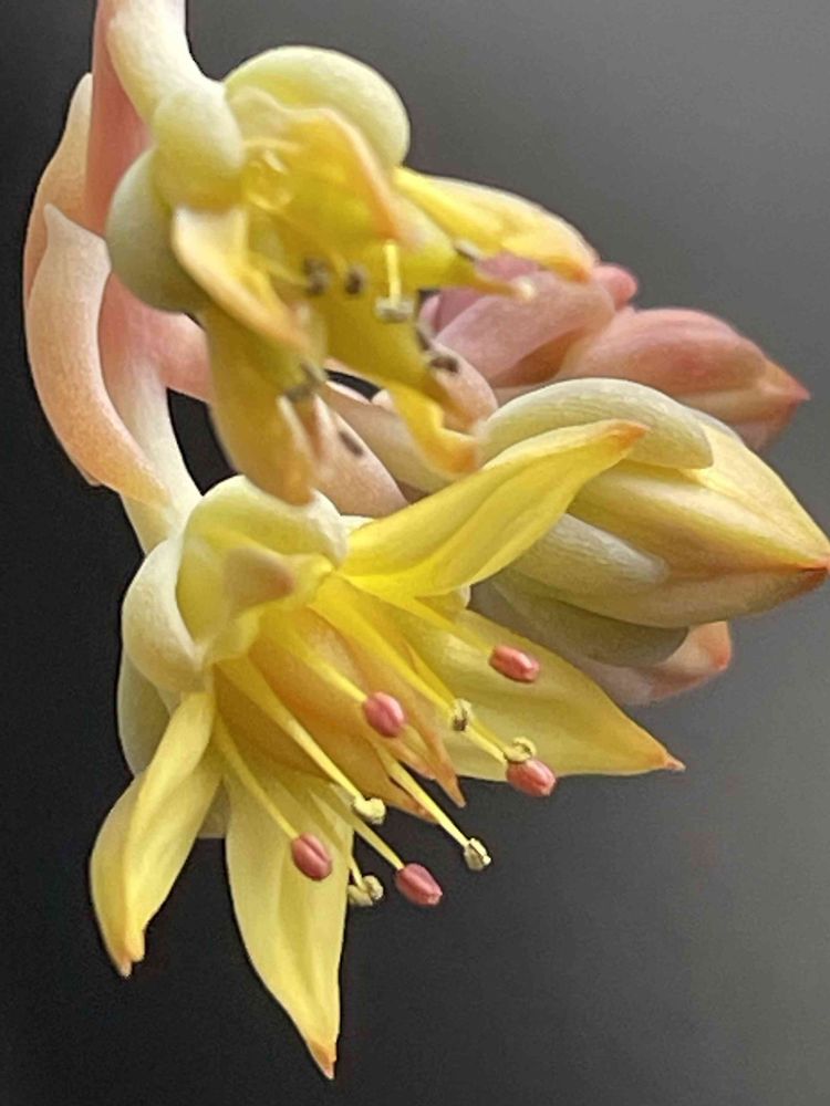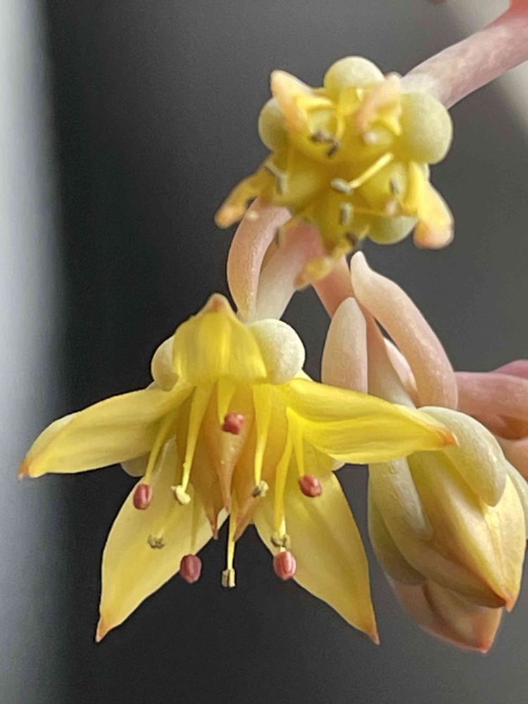 外はまだ春とは言えませんので、多肉ちゃんのお花で癒されています🙋♀️