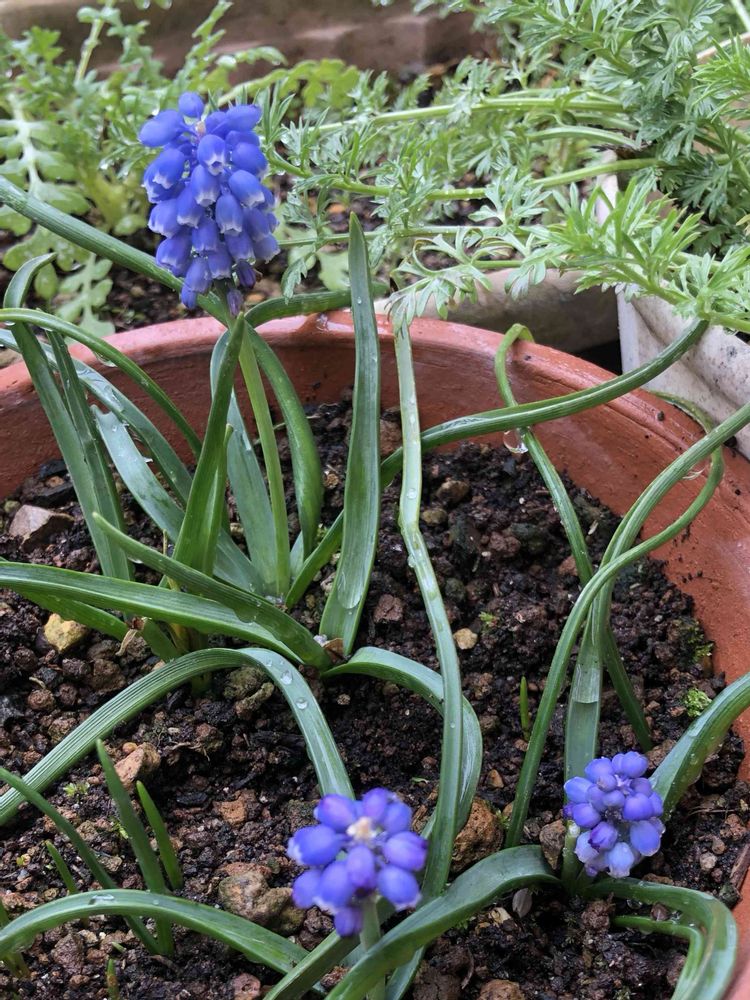 鉢に植えっぱなしのムスカリさん💙今年もお花が上がってきました•*¨*•.¸¸♬