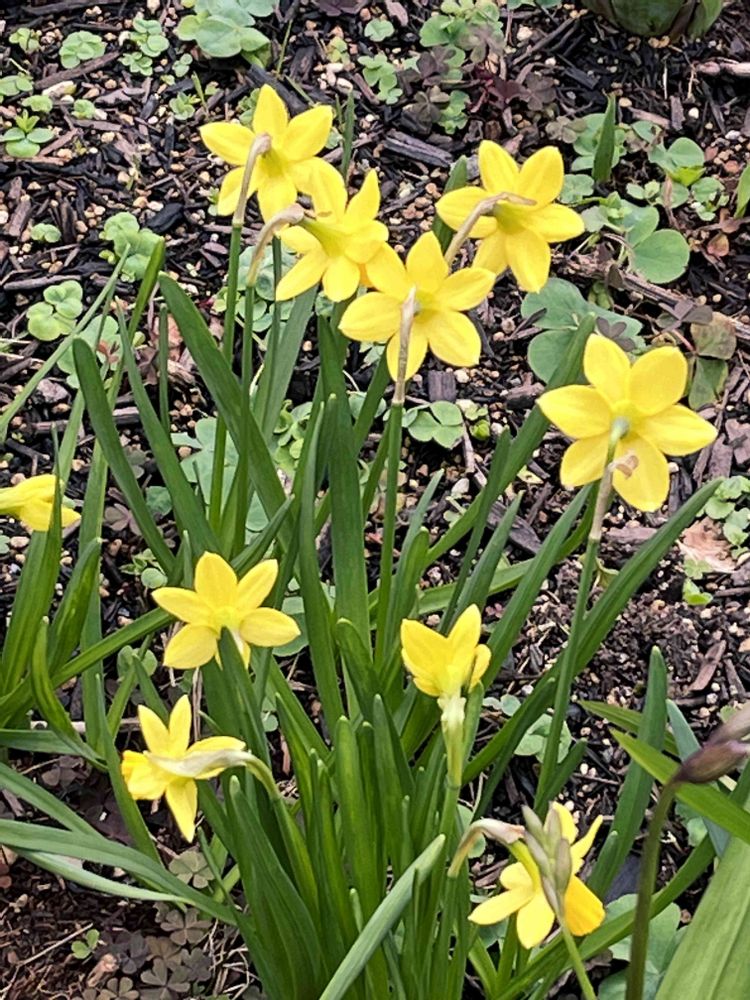 花壇に咲いたミニ水仙は、何故か?お辞儀してます。