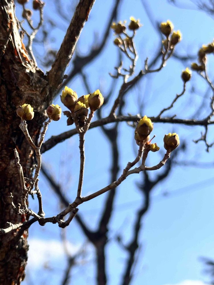 急に寒くなったからかサンシュユの蕾もなかなか開かない🌼