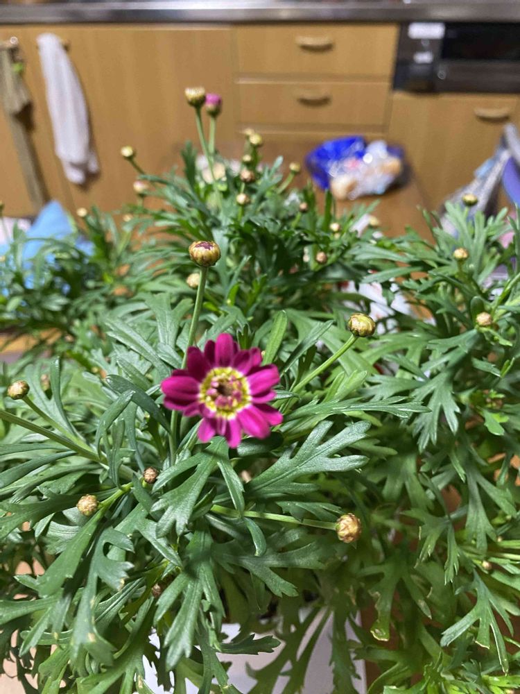 ベランダで育てていたボンザマーガレットちゃんが咲きました。