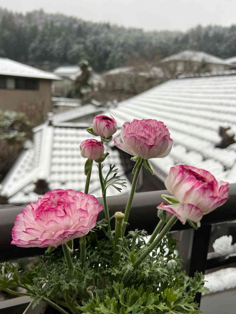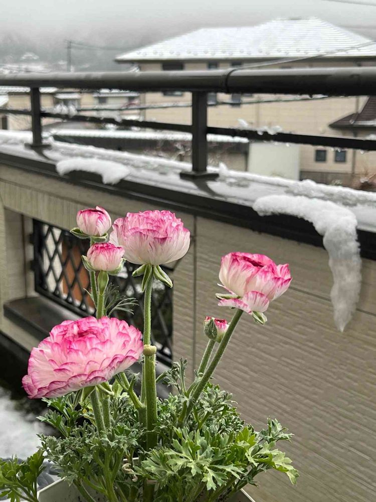 ラナンキュラスと雪遊びしてみました❄️🌸