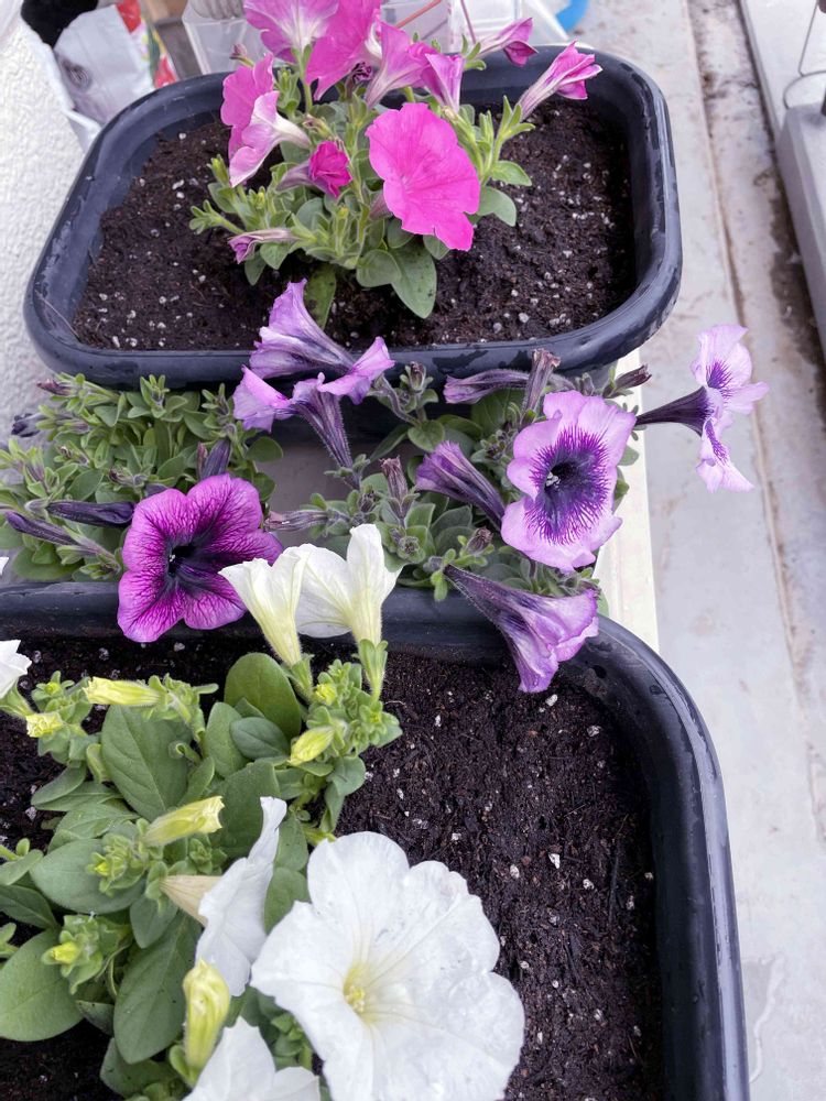 令和6年3月8日(金)🌫️曇り🌫️ おはよー^_^ございます カーテンを開けた時に残っていた雪❄️も今は無く 昨日の夕方植え付けての🥺雪予報にビニール袋で夜を凌いだペチュニア苗達です 店に置かれ始めました🌸🌸🌸🌸🌸