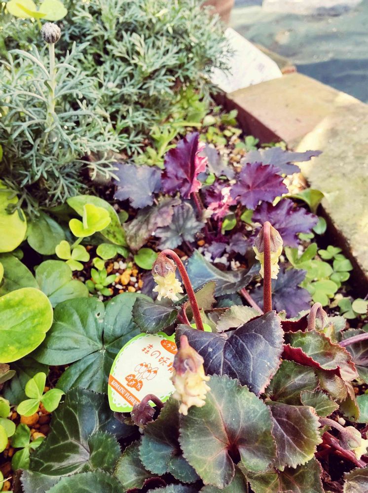 ずっと部屋の中で、元気無くしていた、🟡ミニシクラメン〈森の妖精〉〜地植えにしたらまた、元気になり〜嬉しい♥✿♥
