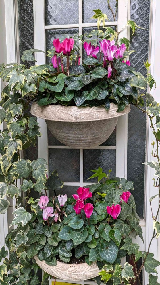 ガーデンシクラメンとアイビーのハンギング🌿🩷🌿❤️