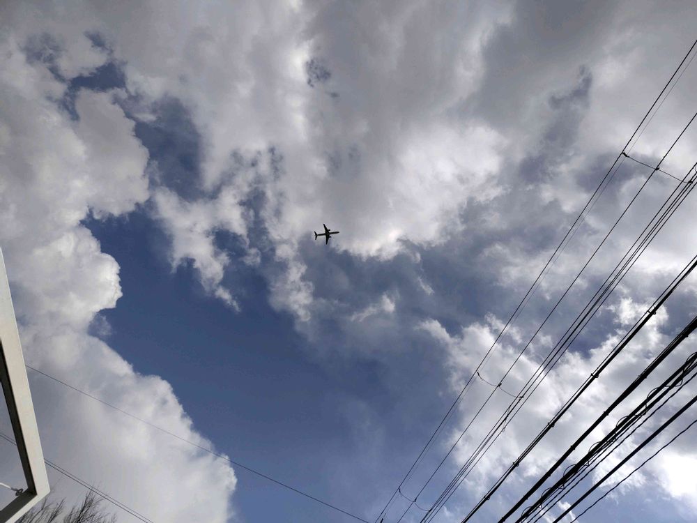 あんまり白い雲がふわふわで……青い空がきれいだったから…パシャ…🤳…してましたら…✈️が…
