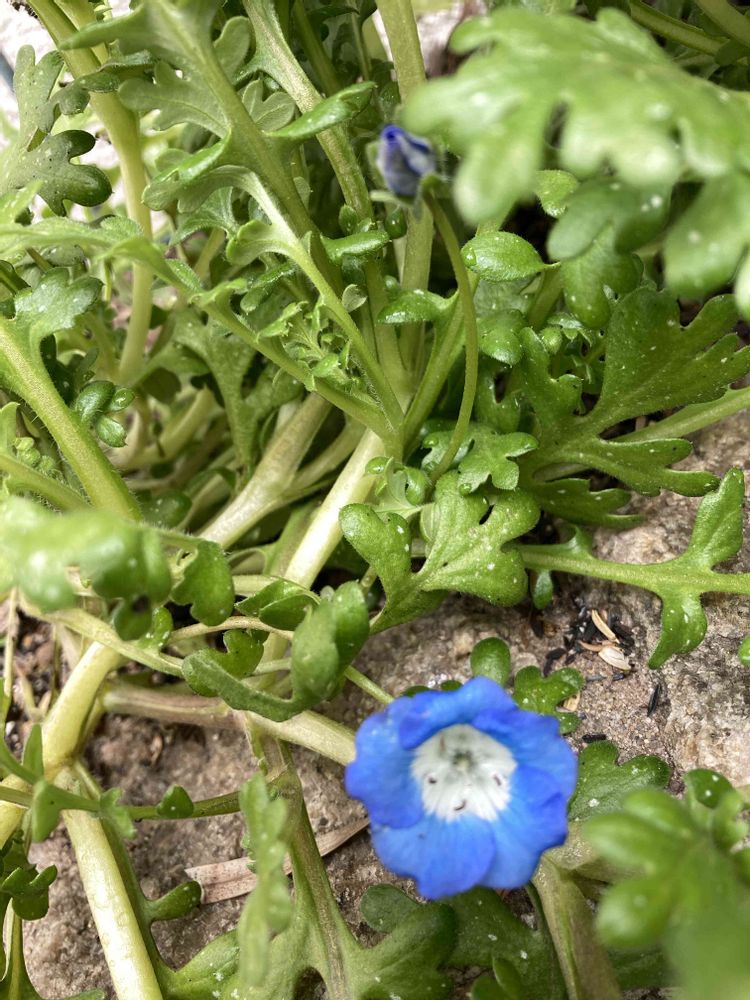 ①ネモフィラ 種蒔きからの開花なので、徒長は許す🩵💙🤍