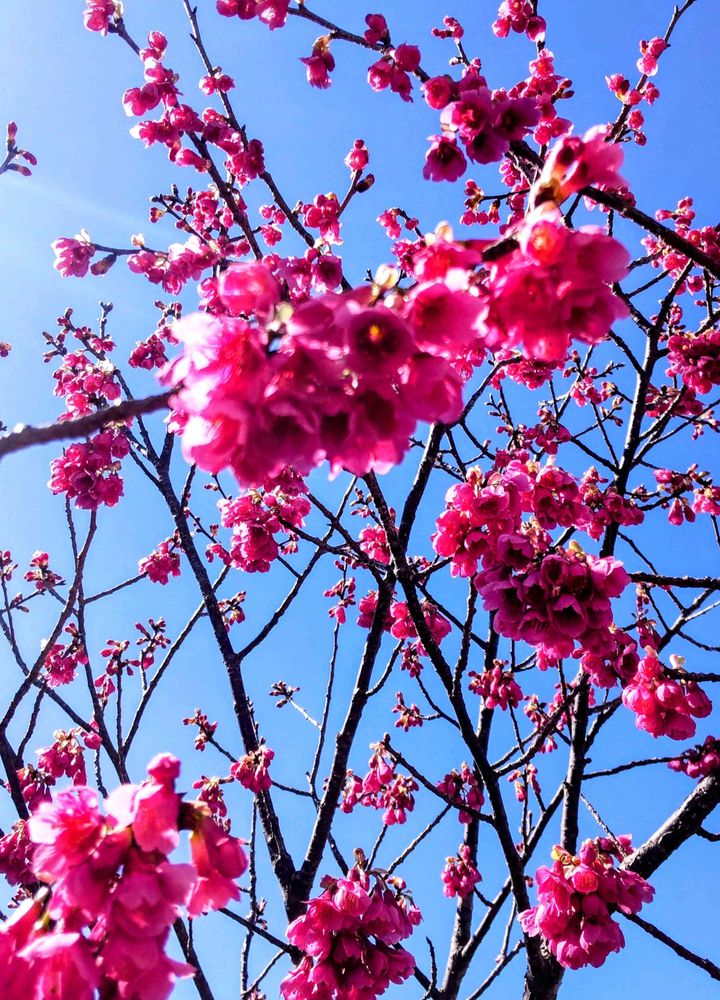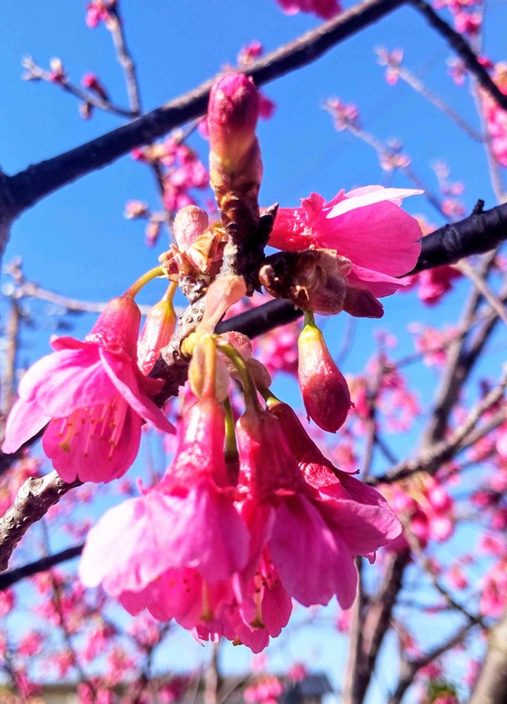 ①〜⑤近所の広場で咲いている、寒緋桜🌸🌸🌸(掛川桜)