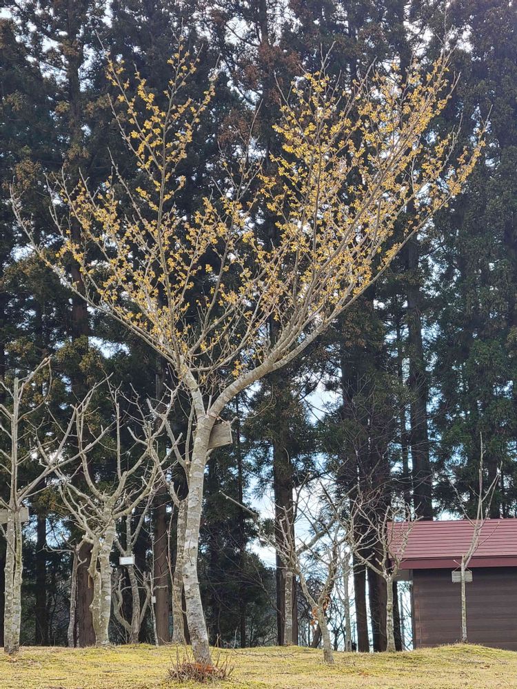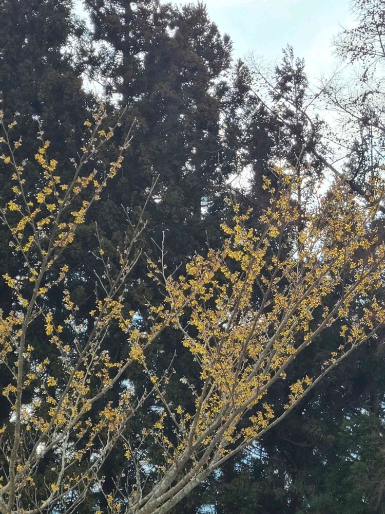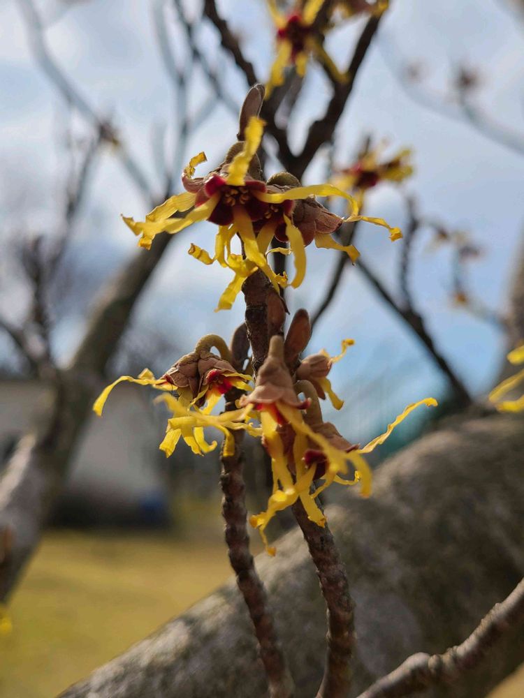 散歩がてら公園に行ったら一本だけお花が咲いていてプレート見たら「マンサク」と書かれてました。