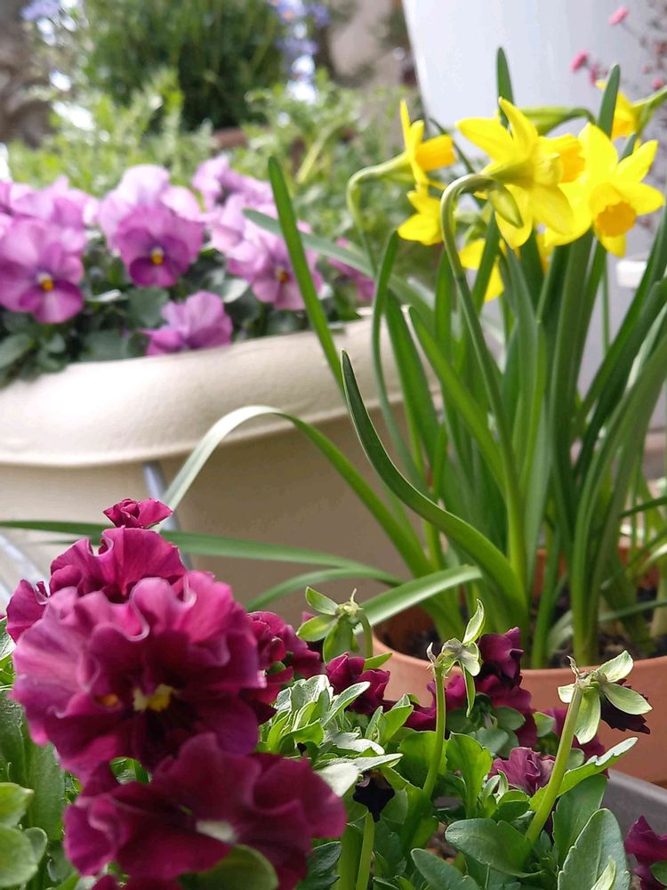 ミニ水仙を少し鉢植えにしました。