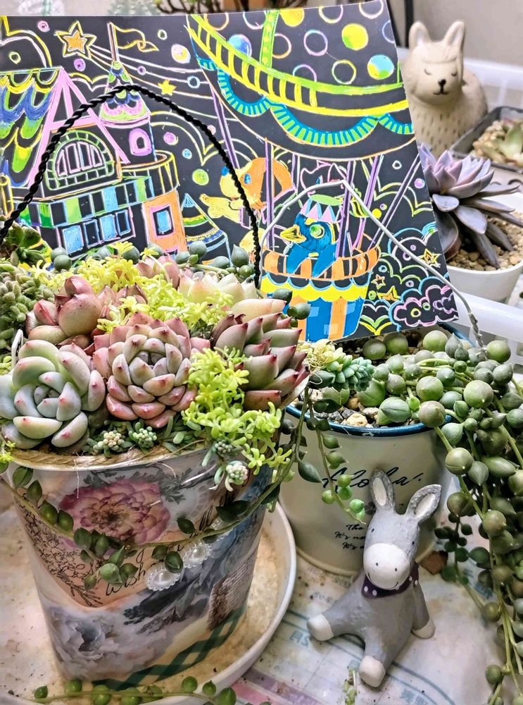 スクラッチアートもリメイク鉢の寄せ植えも素敵ですね~♪♪😍朝から癒されました🤗✨
