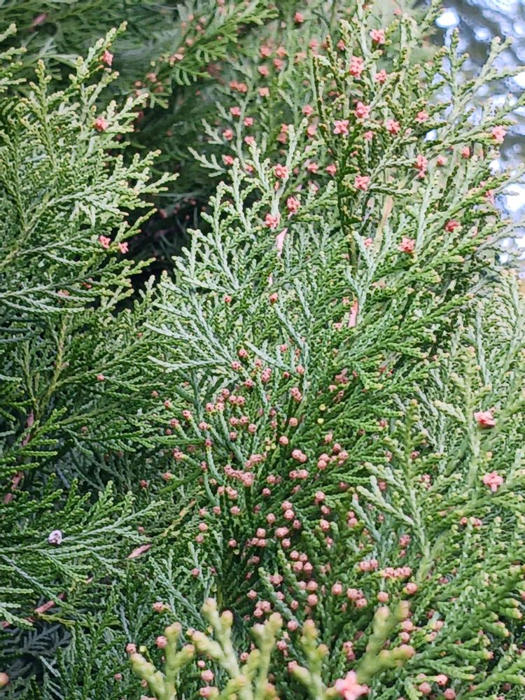 上の方にまとまって肌色の金平糖のように見える花🩷