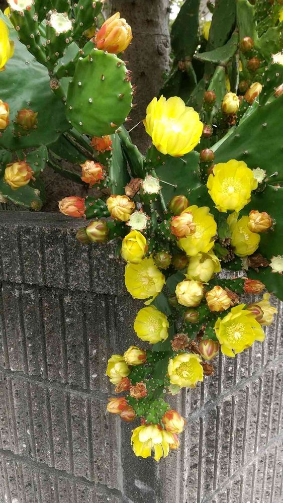 2*花が山ほど咲く道端のウチワサボテン